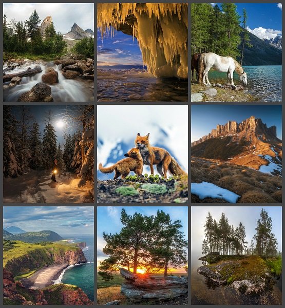 Сборник фотографий природы, сделанных в разных уголках России с указанием места съемки. Реки, озера, поля, моря и горы, каждый уголок природы прекрасен и по своему уникален. Поэтому очень хочется непременно их все посетить и лично убедиться, что они на самом деле настолько прекрасны. В этом сборнике вы можете посмотреть на много прекрасных пейзажных снимков.